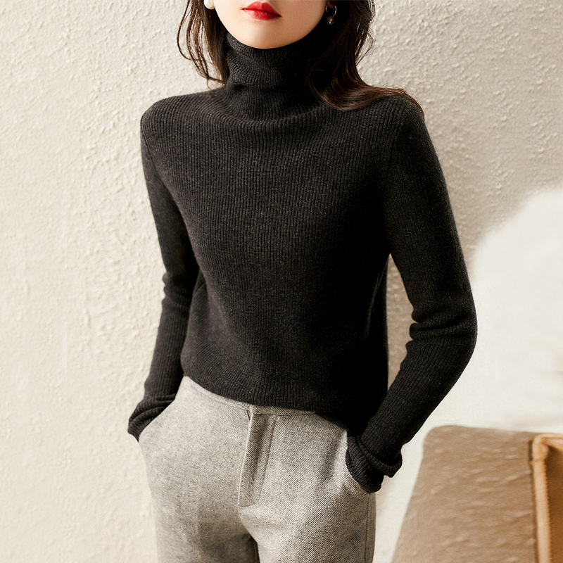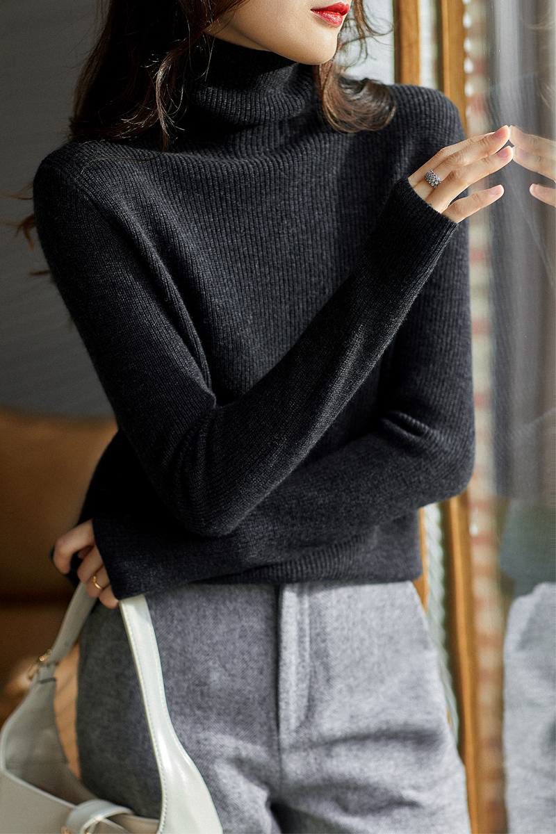 Multi-color high-necked women's knitted bottom sweater with thin pullover