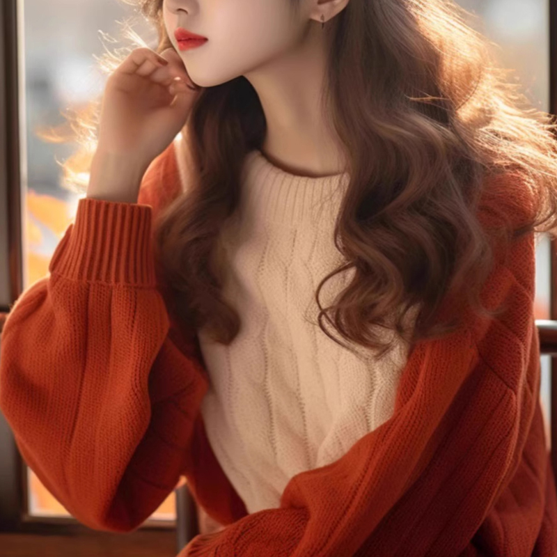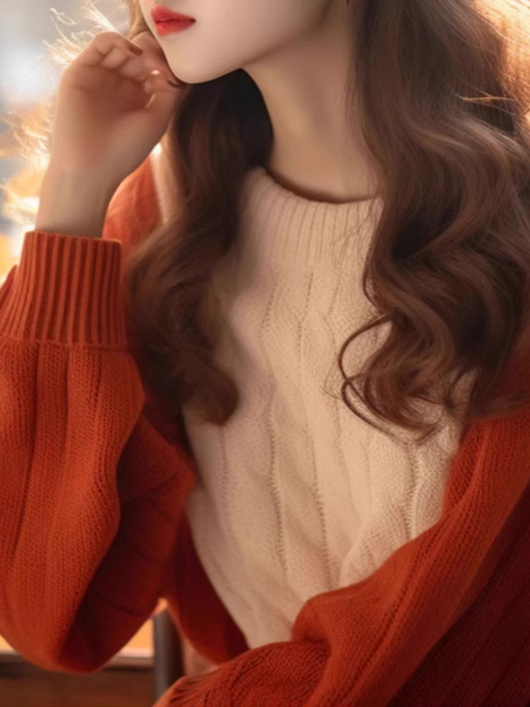 Orange contrasting pullover loose women's autumn and winter sweater