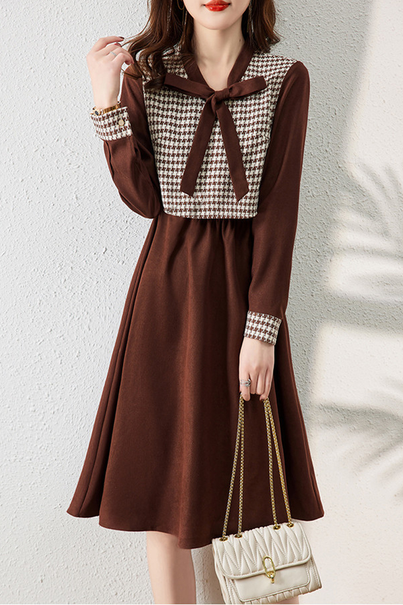 Bow tie with printed skinny A-figure dress