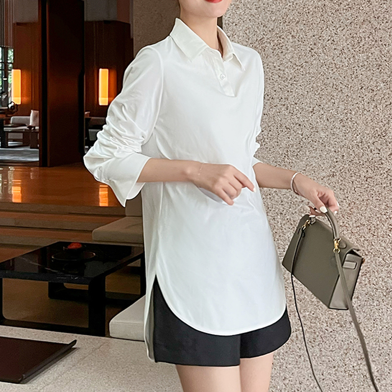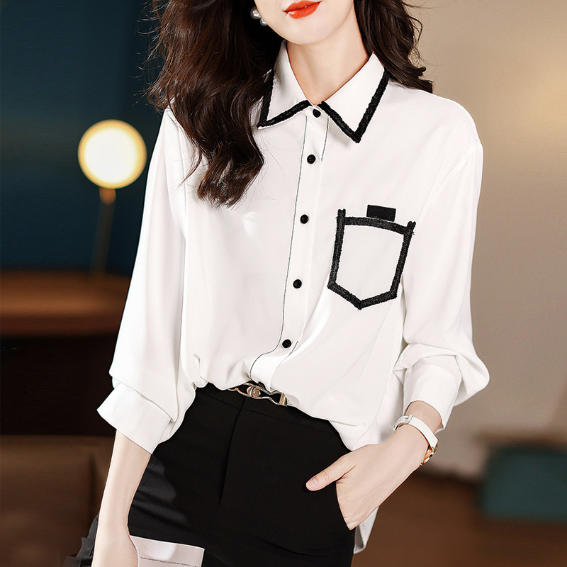 Design sense color sticker bag white long-sleeved shirt