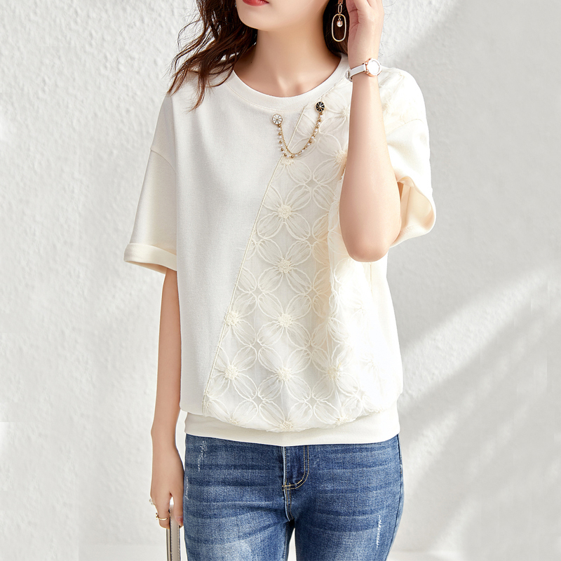 French pink lace drop collar pullover short-sleeved shirt
