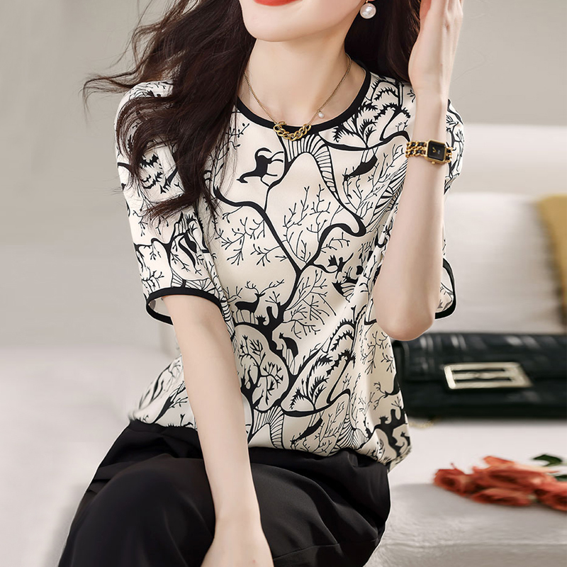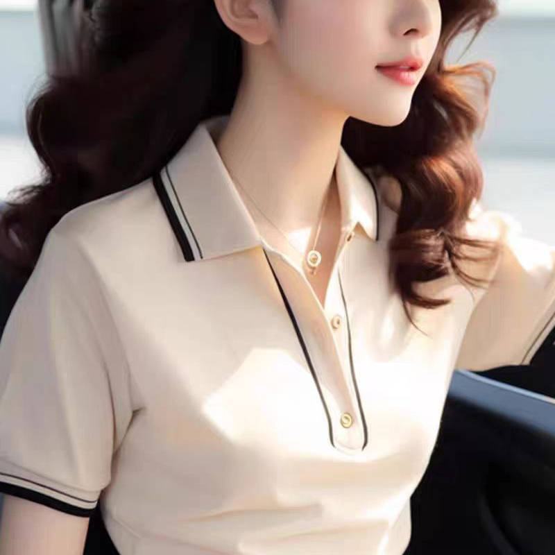 Design sense stitching commuter temperament women's short-sleeved blouse
