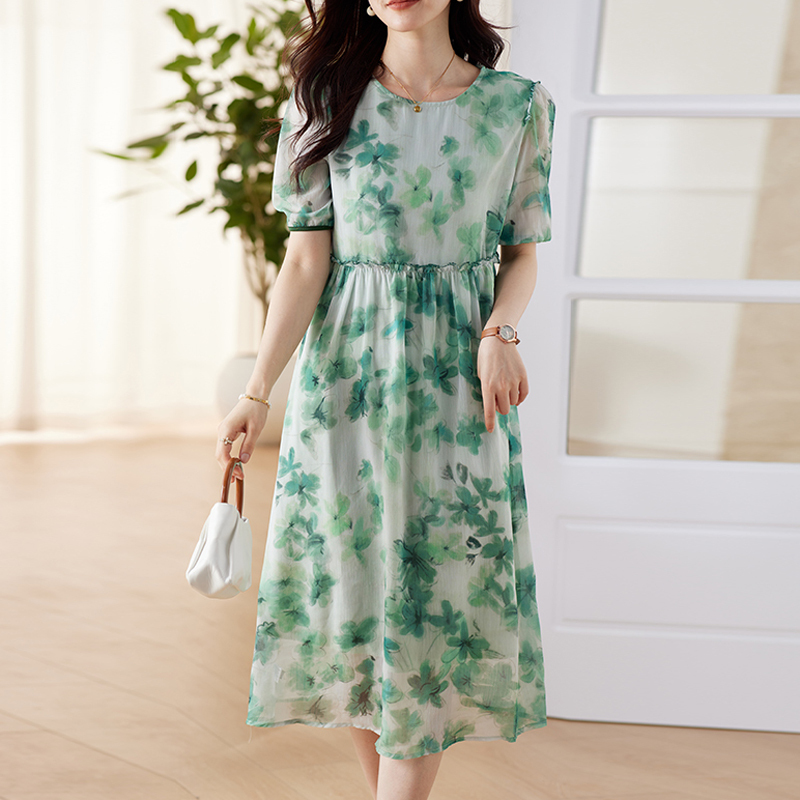 French fresh fungus brim skirt green color dress