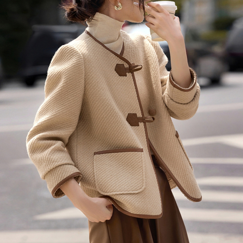 French contrast hemmed retro camel coat top