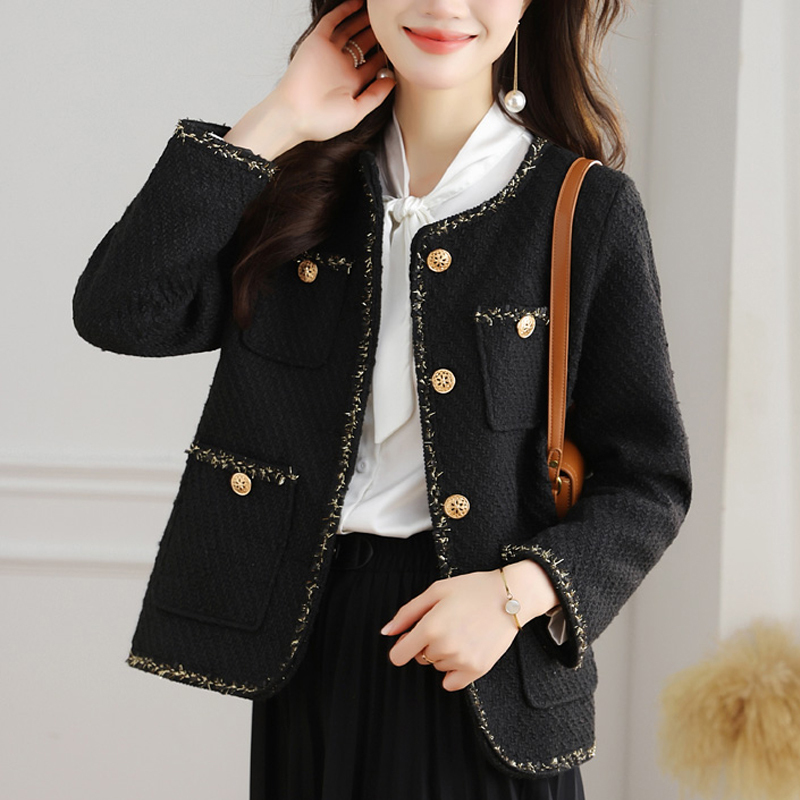 French short elegant lace black autumn and winter women's coat