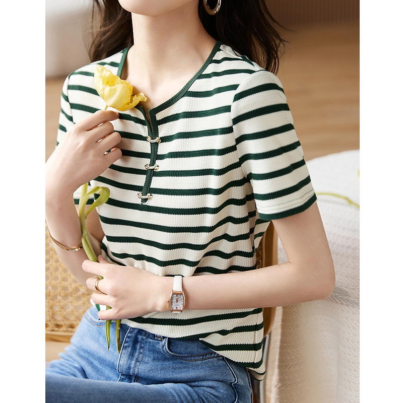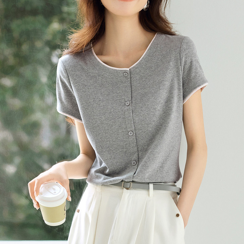Design contrast color edging gray short-sleeved women's t-shirt top
