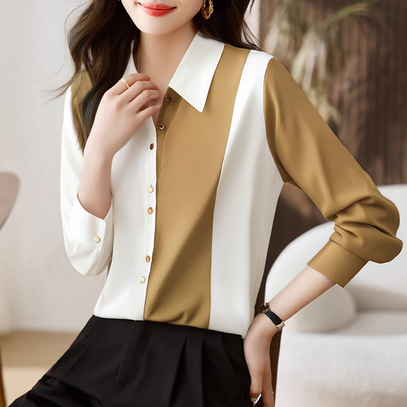 Stitched and contrasting commuting new spring and autumn temperament blouse