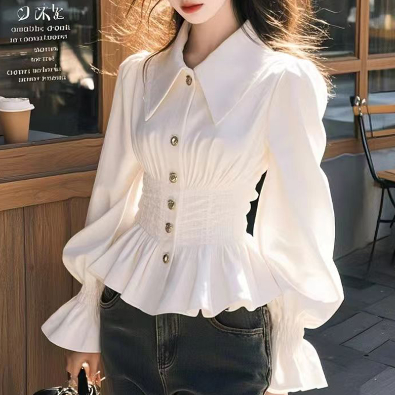 Design style lace tassel rice apricot pullover loose sleeve shirt