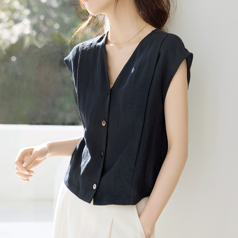 Vintage high-class gray black commuter coat autumn and winter sleeveless vest blouse