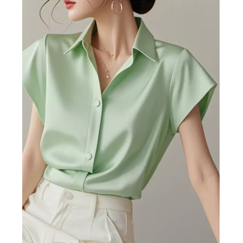 Summer commuting temperament green shoulder short-sleeved women's shirt