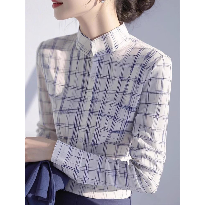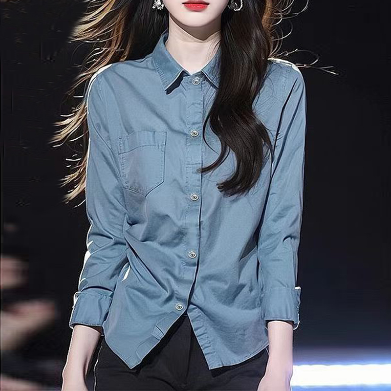 Blue slimming commuting new spring and autumn sleeve women's shirt