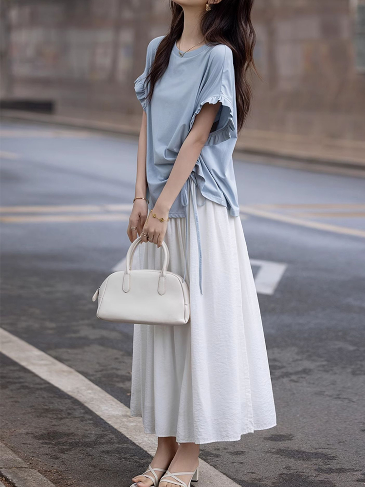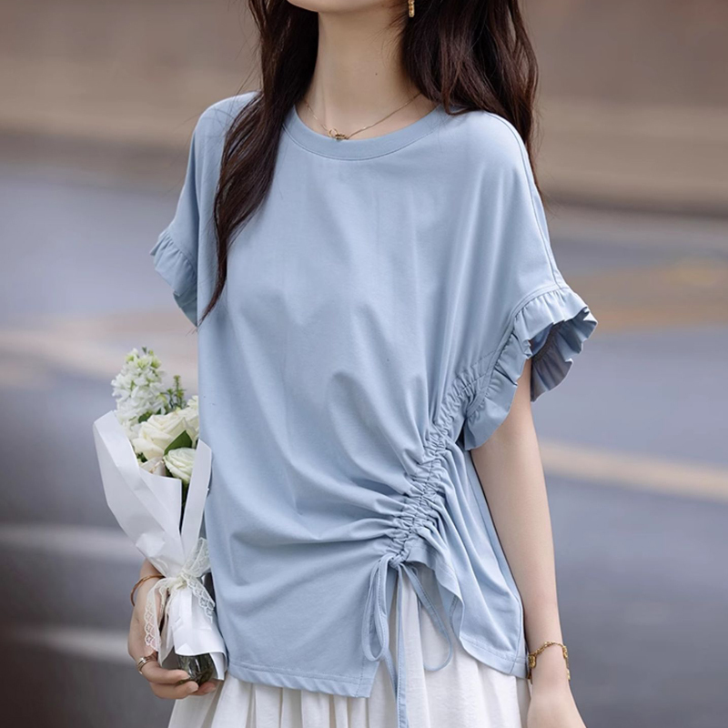 Design Asymmetrical side drawstring short-sleeve women's T-shirt top