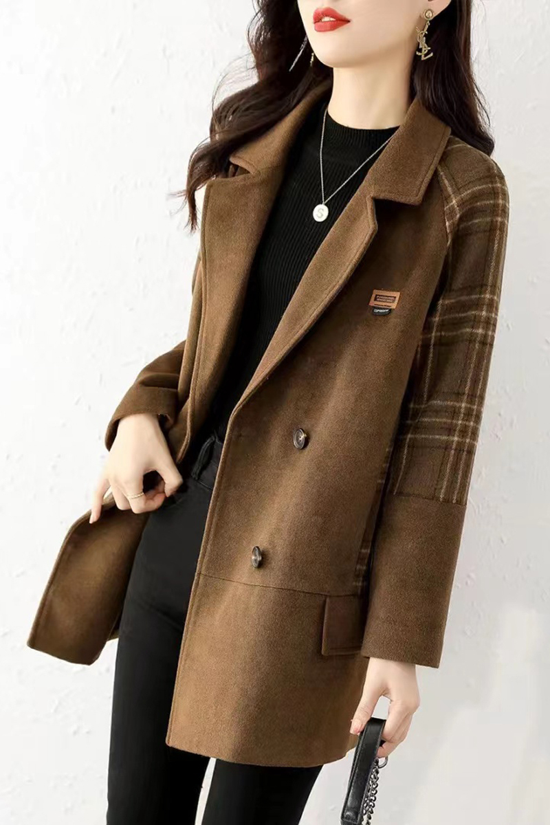 English plaid spliced brown coat