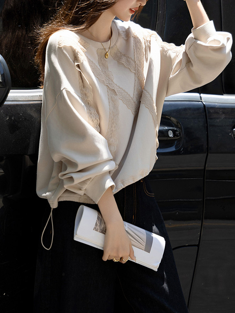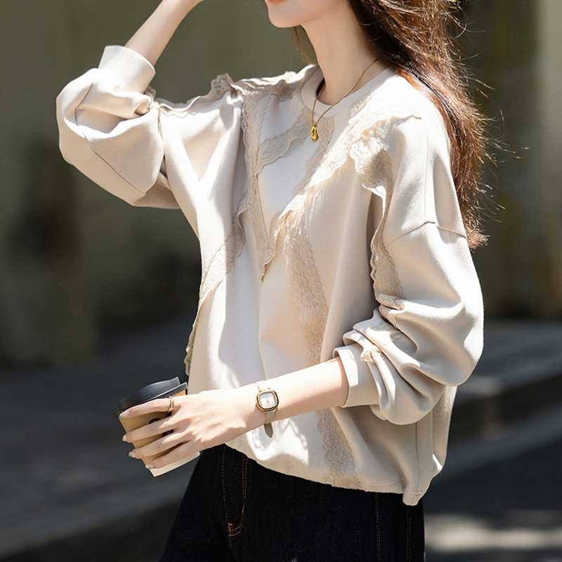 Lace stitching loose apricot lazy style new autumn and winter women's hoodie