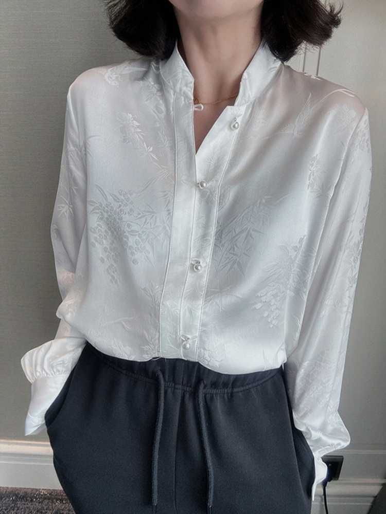 Retro flower and bird jacquard temperament long-sleeved blouse