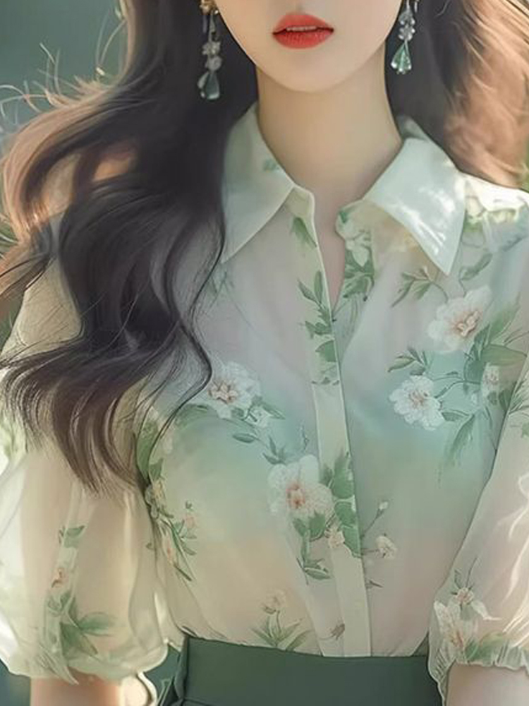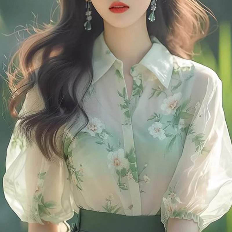 Green fresh color loose summer short-sleeved women's shirt