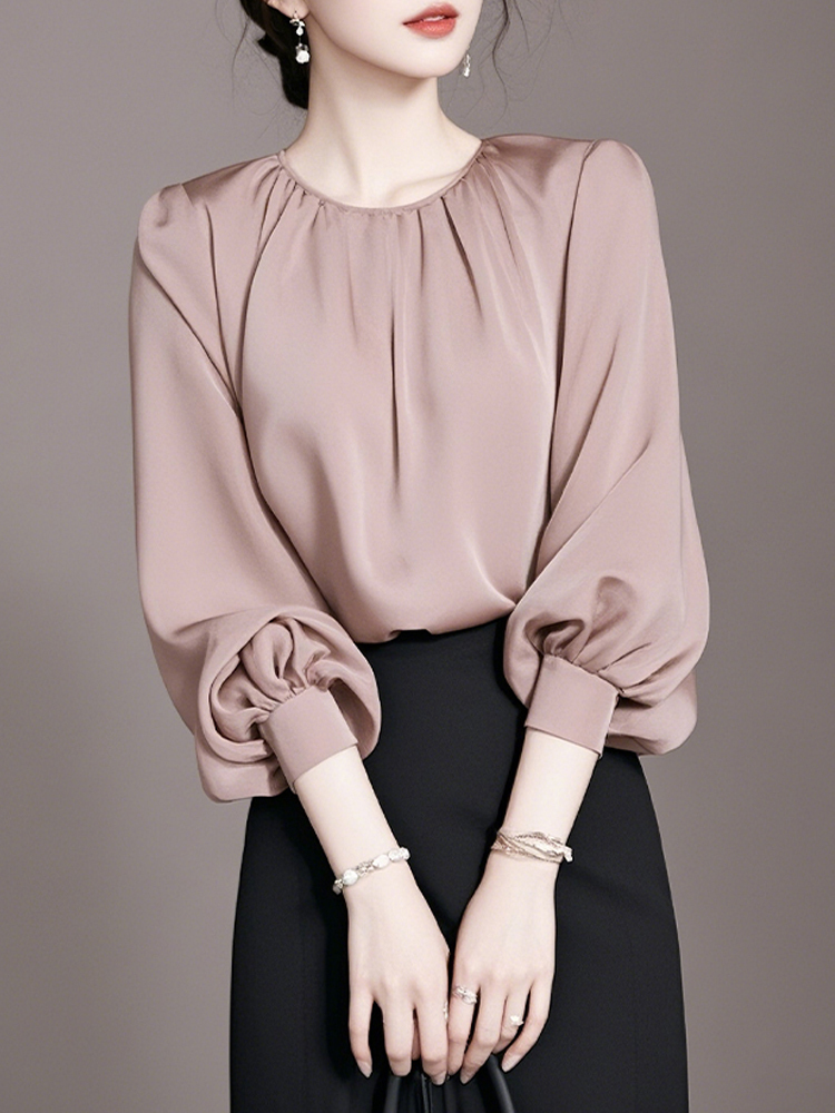 Light luxurious light pink round-collar pullover blouse