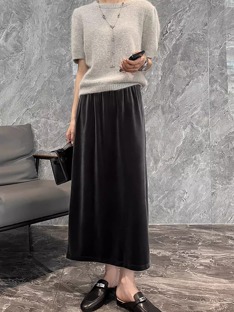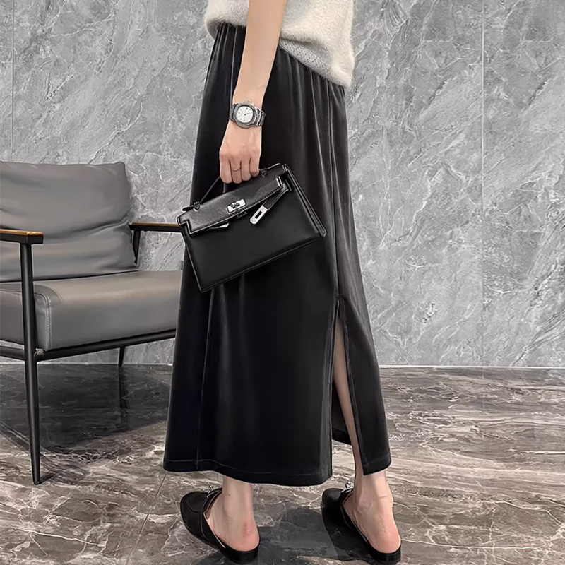 High waist, drooping, split back, medium length skirt, one-step skirt