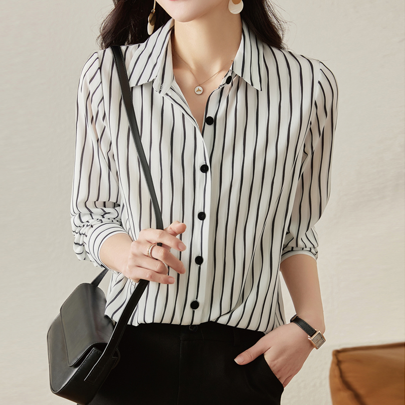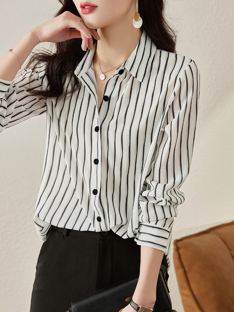 Vertical stripe commuting new style loose spring and autumn sleeves women's shirt