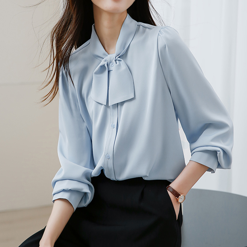 Blue new style elegant bow simple spring sleeve blouse