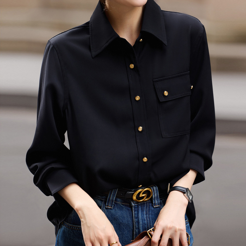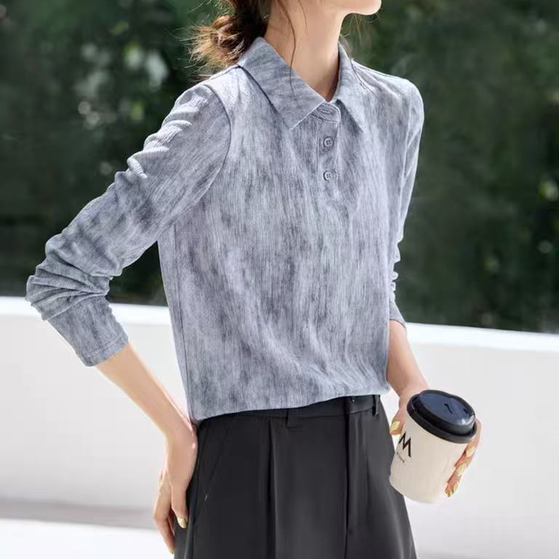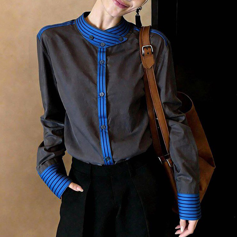 Contrast-color collar New gray casual spring sleeve women's shirt