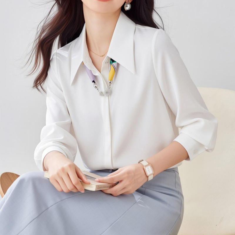 White commuter new style detachable silk scarf temperament sleeve women's shirt