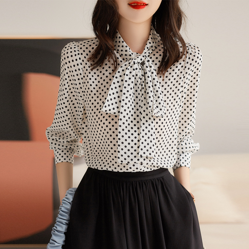Elegant bow shawl polka dot sleeves blouse