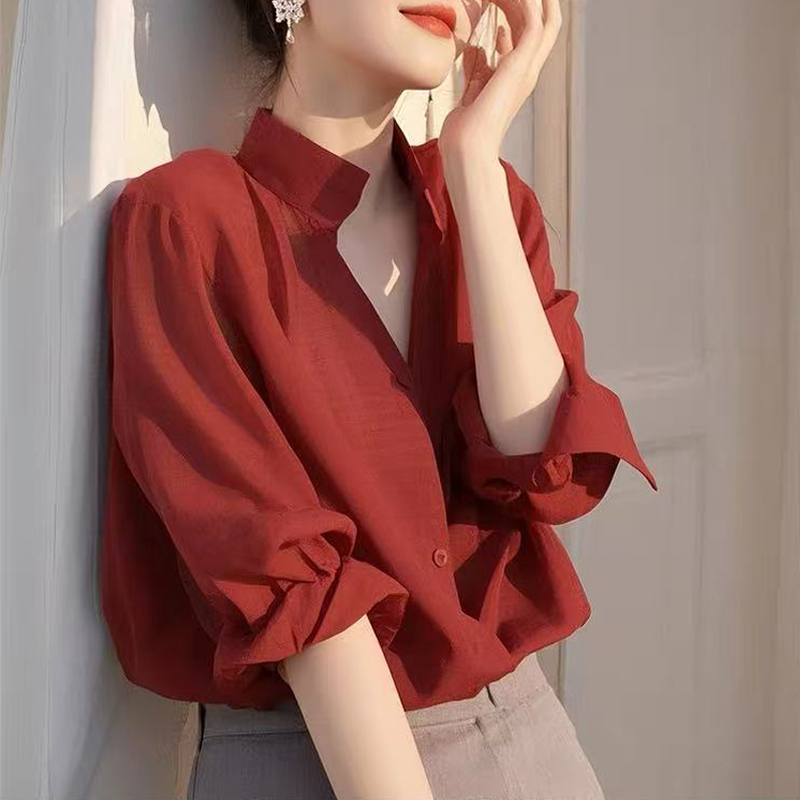 French red lazy loose short-sleeved women's shirt