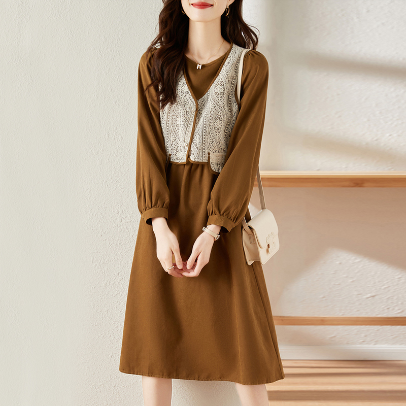 Suit skirt embroidered waistcoat brown one-piece dress two-piece set