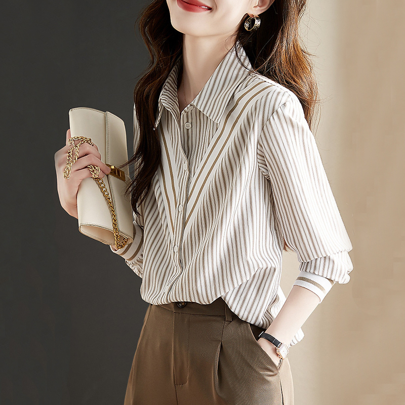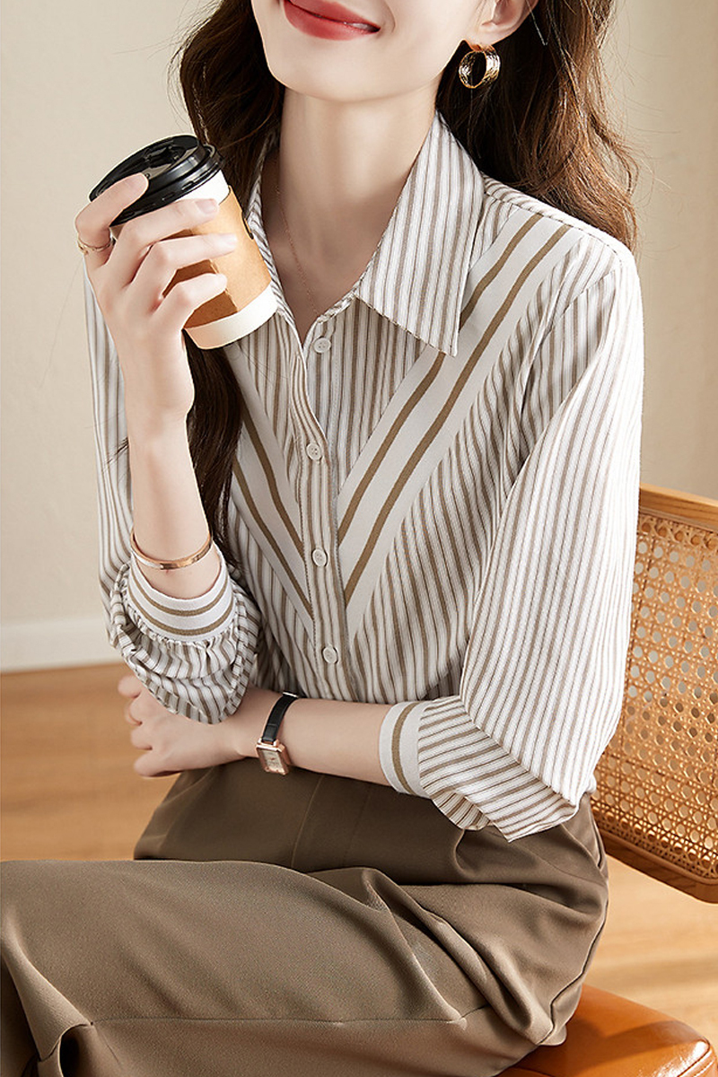 Stripe splicing design sensible long-sleeved lady's shirt