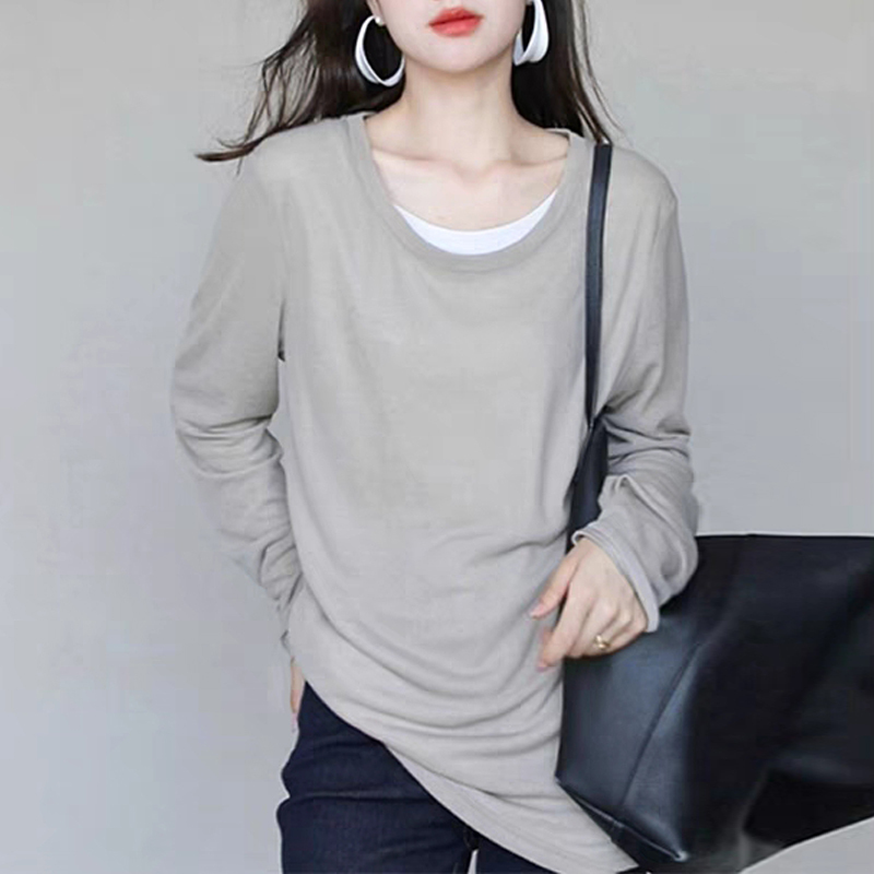The gray and white color splicing fake two blouses
