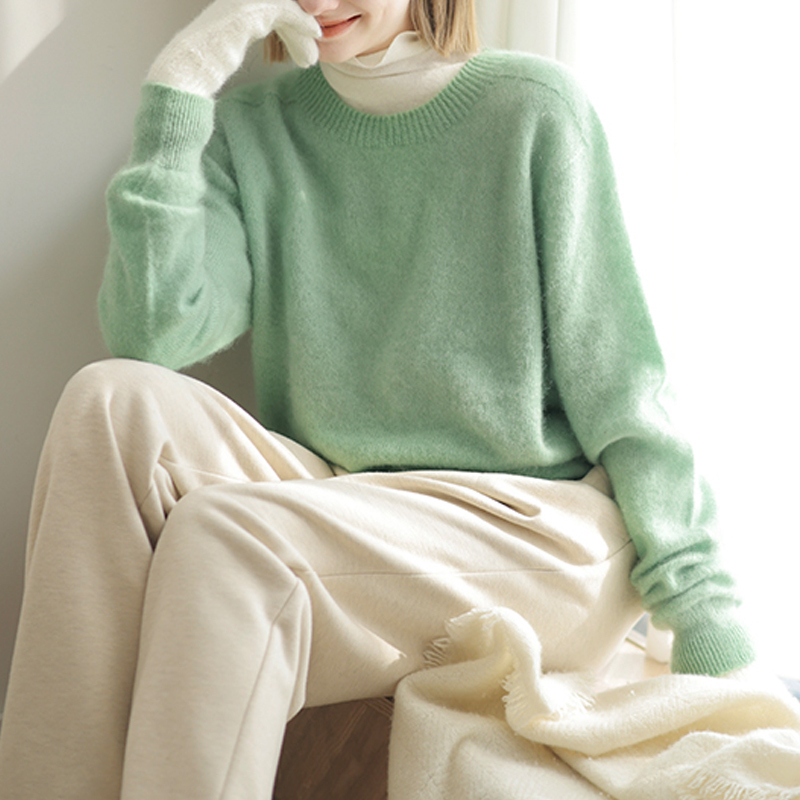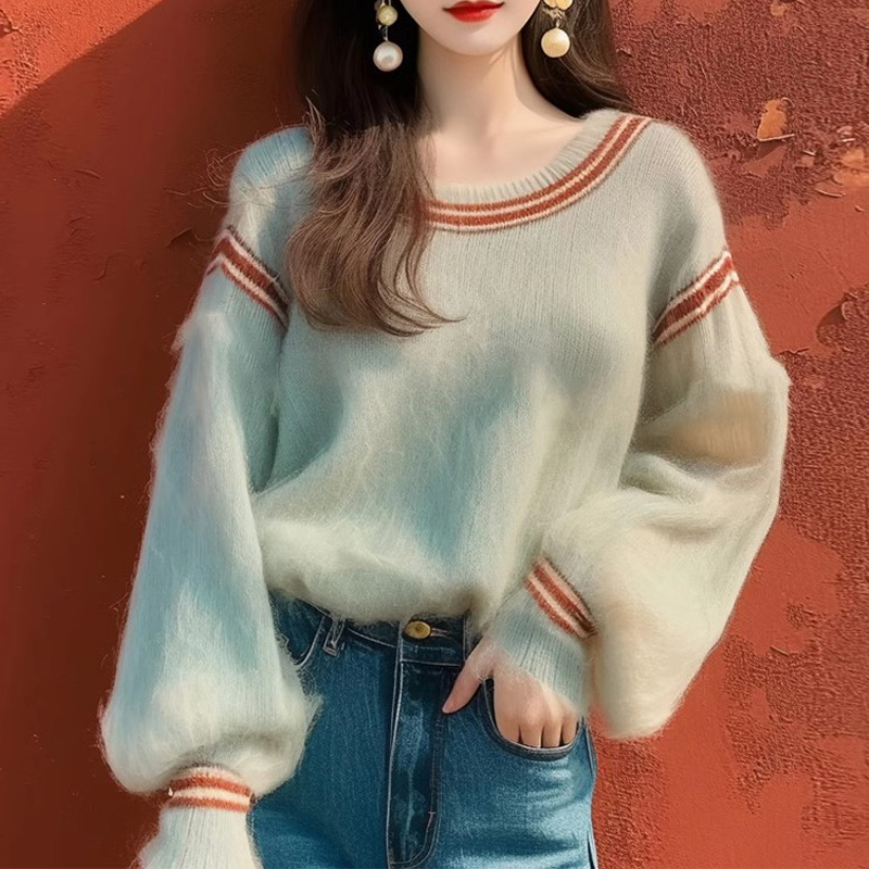 Mint green contrasting lazy pullover sleeve sweater