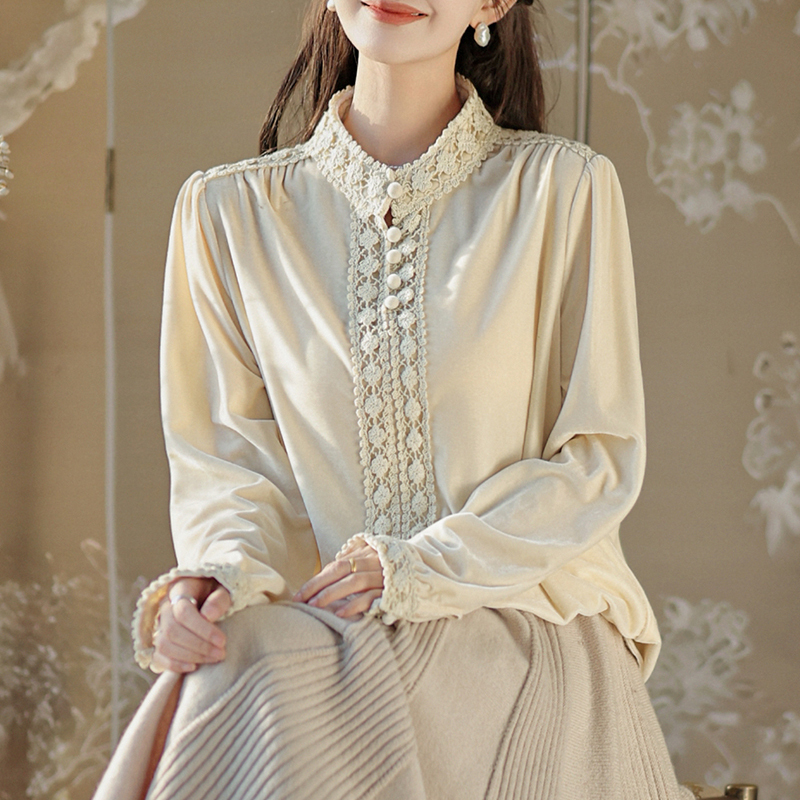 Elegant lace loose long-sleeved blouse