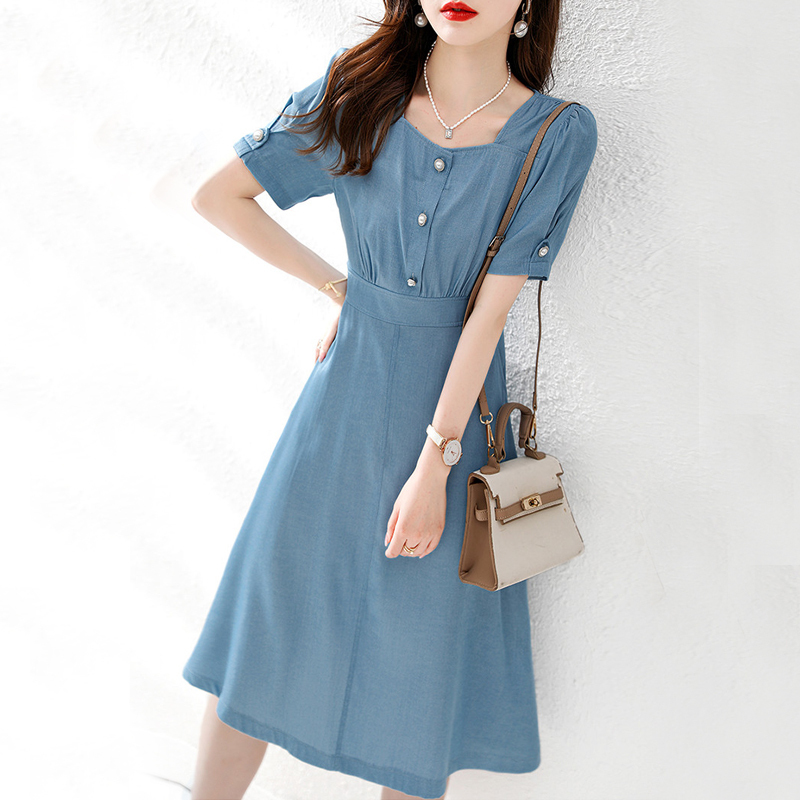 The new waist-in casual denim dress