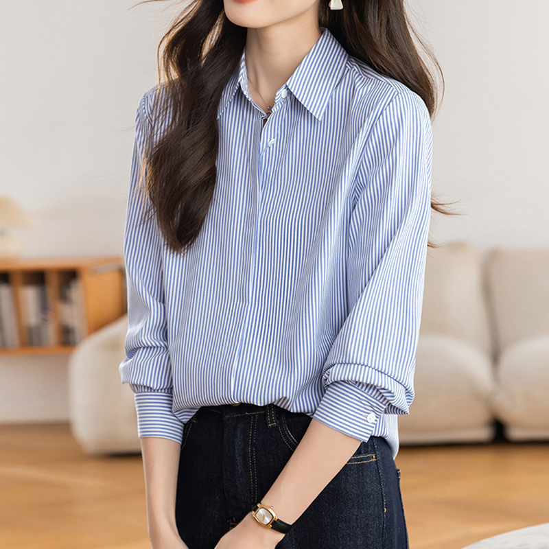 Spring new style blue striped casual sleeve women's shirt