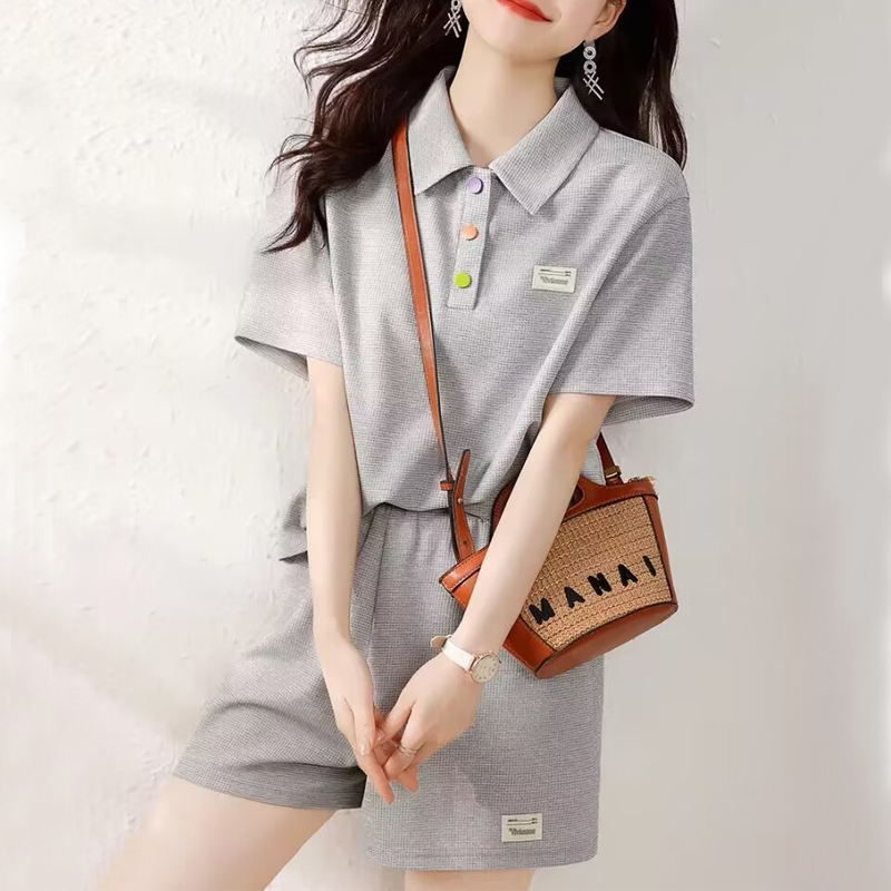 Casual grey shorts T-shirt ladies two-piece set
