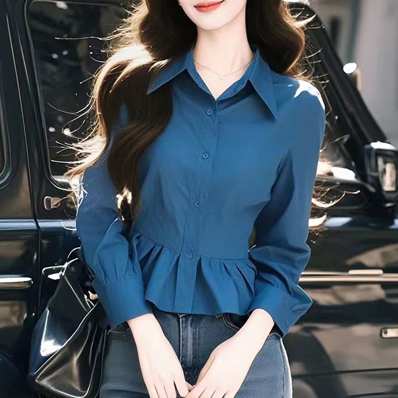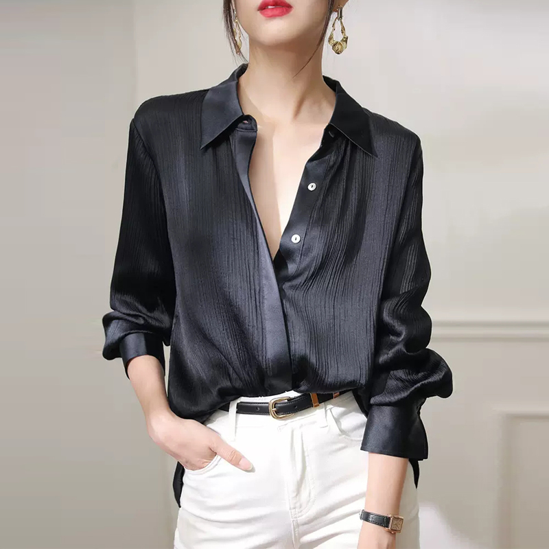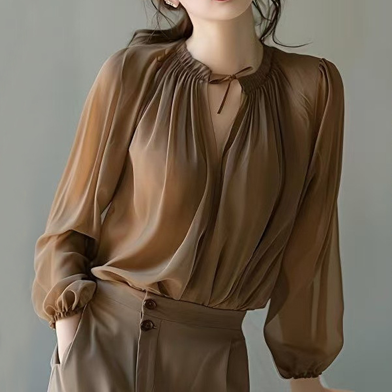 A new autumn style wrinkled long-sleeved blouse