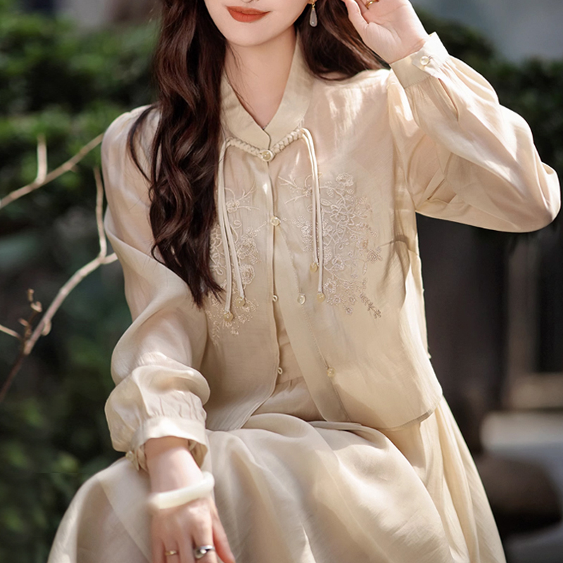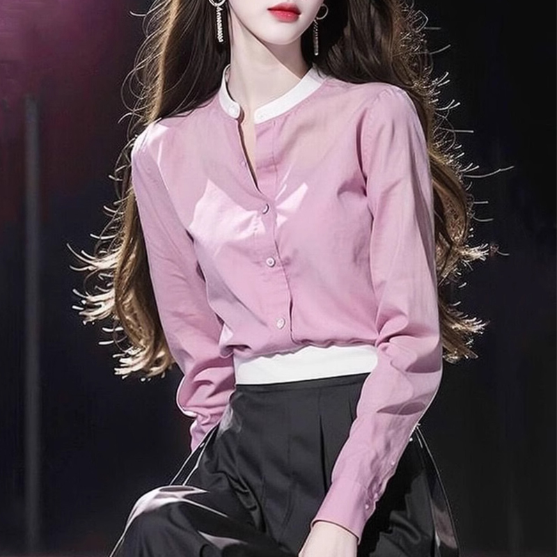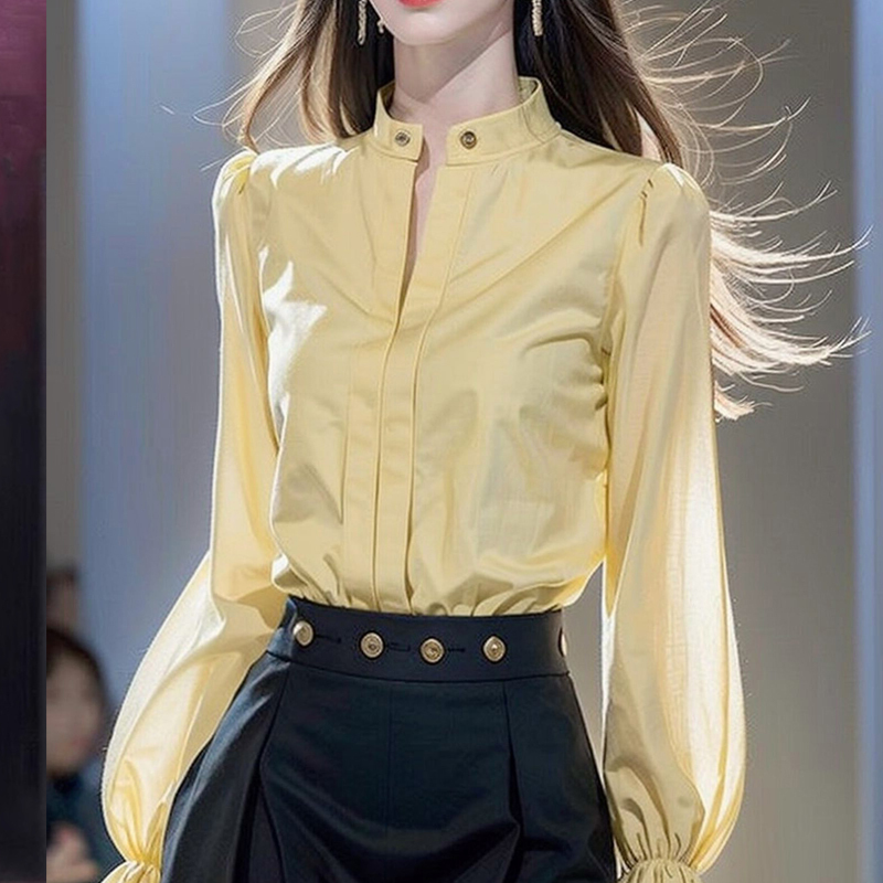 Simple temperament small stand-collar yellow commuter sleeve shirt