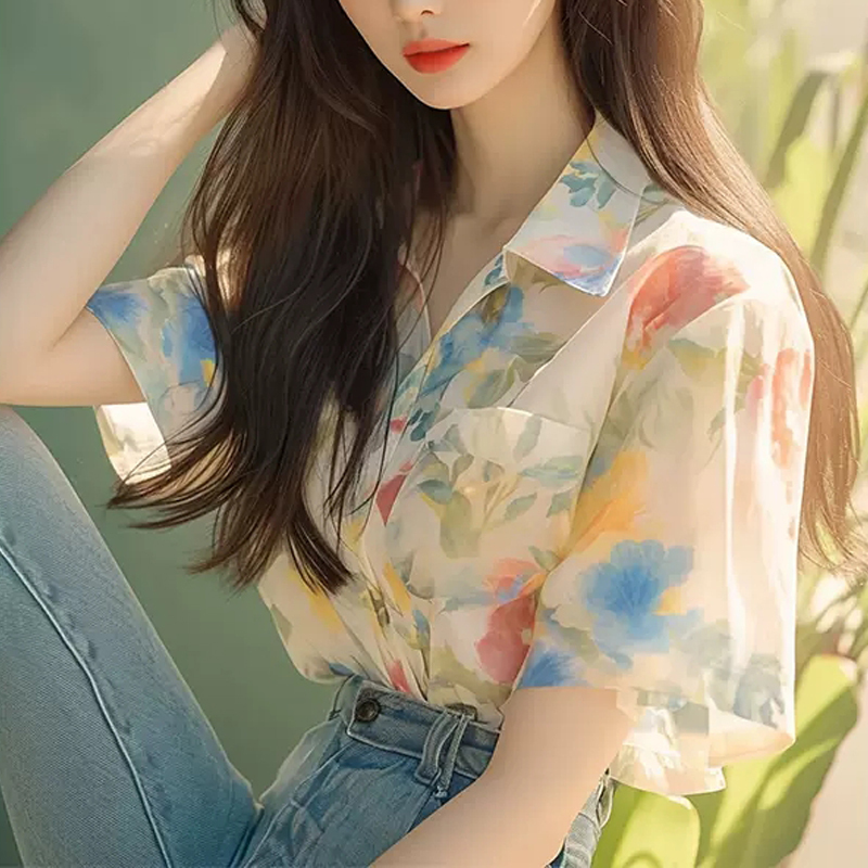 French fresh color short-sleeved blouse