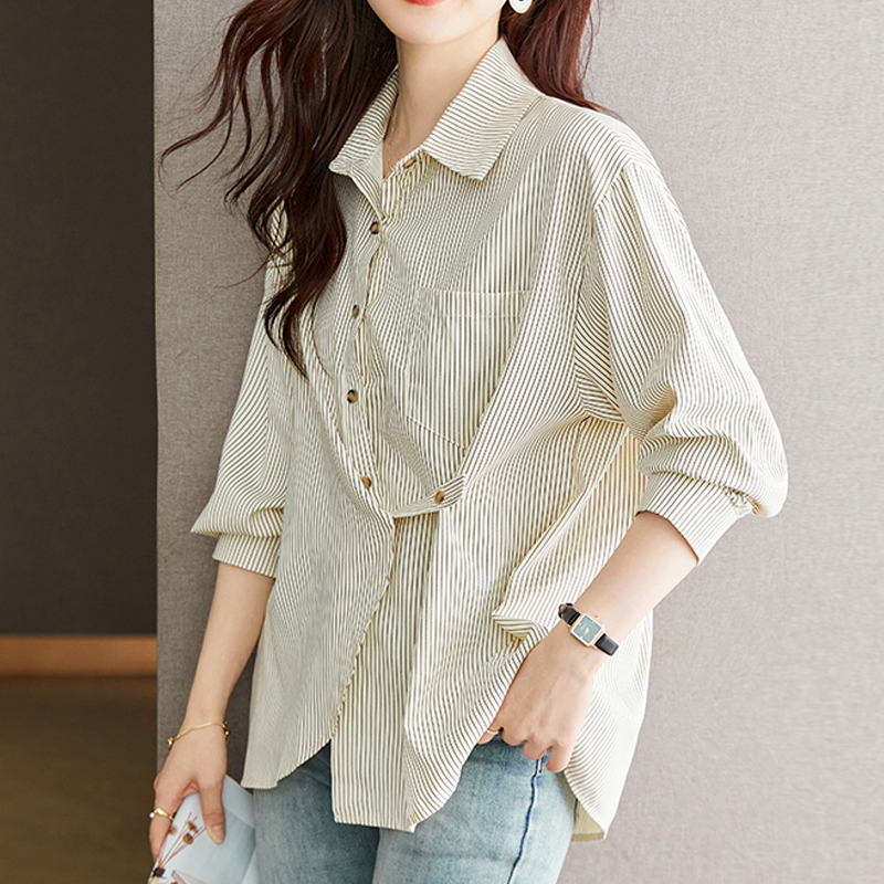 Design asymmetrical pinstripe loose sleeve shirt