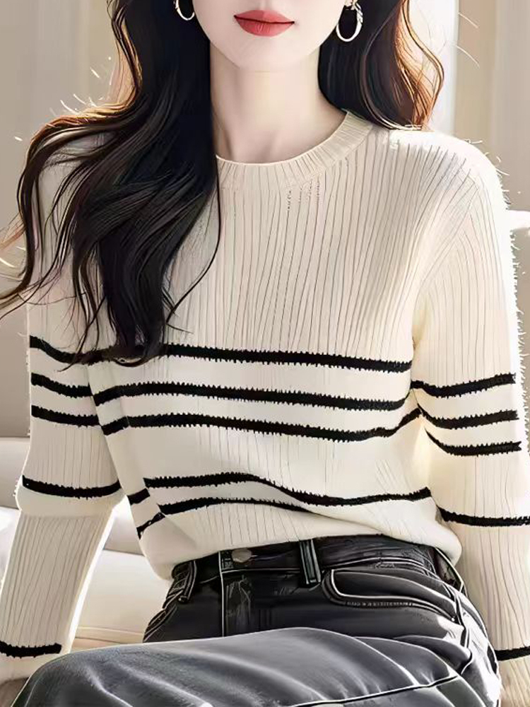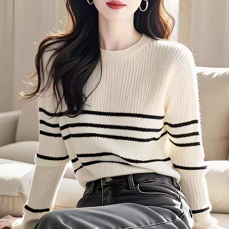 Black and white striped pullover autumn and winter women's sweater top