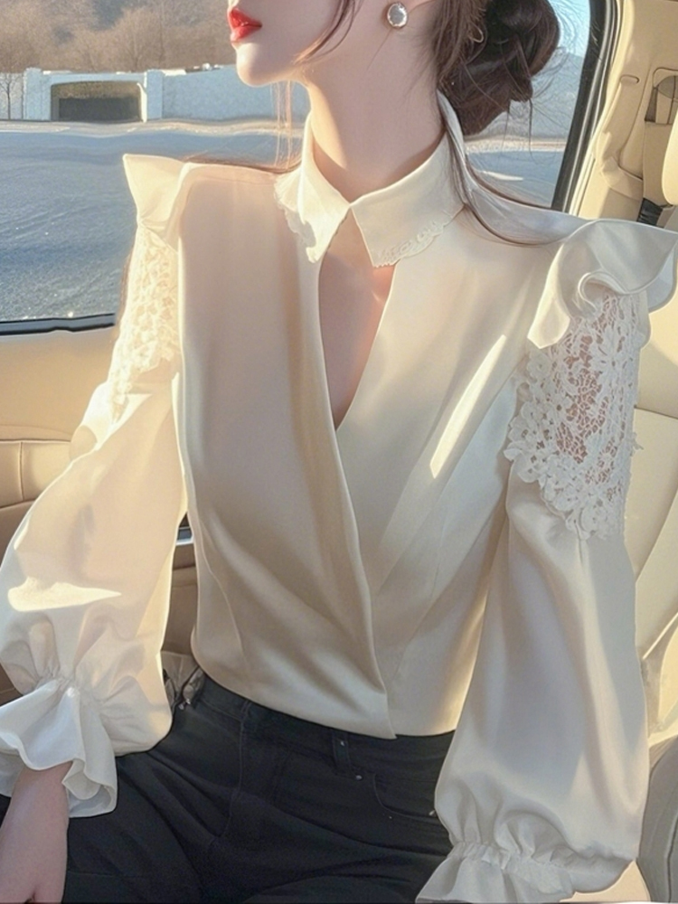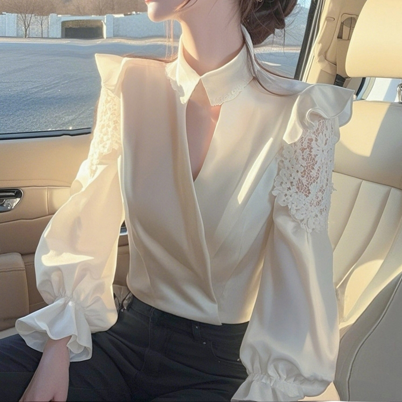 niche design lace stitching shrug white sleeve shirt