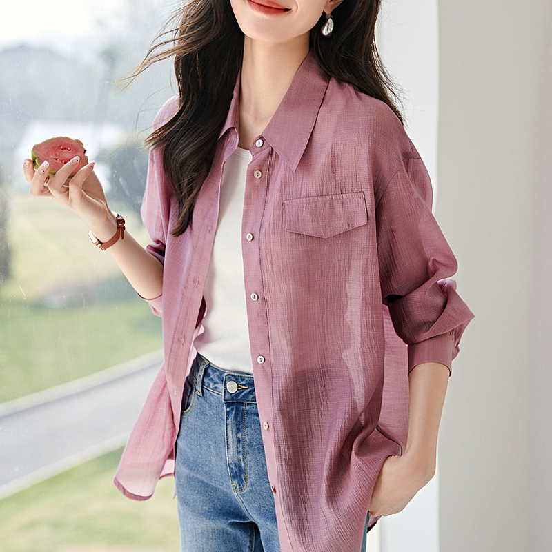 Drop shoulder sleeve back split lotus root pink sleeve shirt