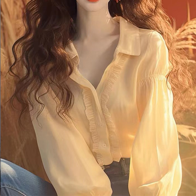 Age-reducing female blouse with fungus edge and splicing yellow sleeves