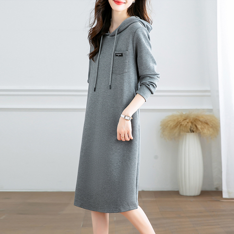 Casual grey drawstring hooded dress
