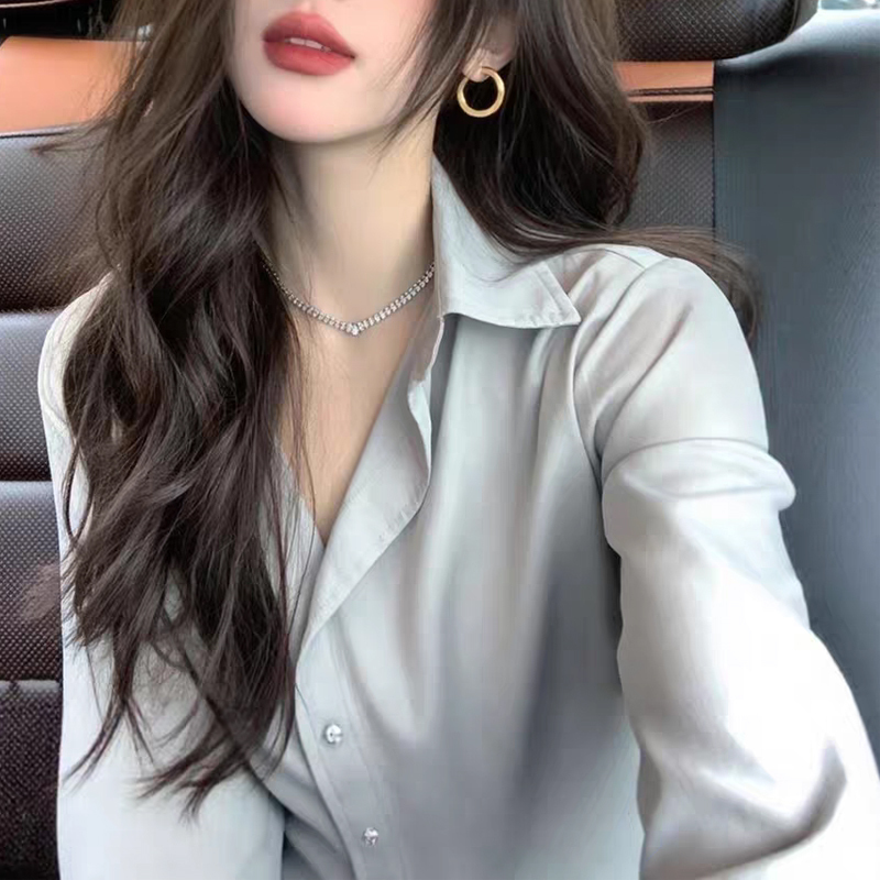 Light blue commuter autumn new style blouse sleeve blouse
