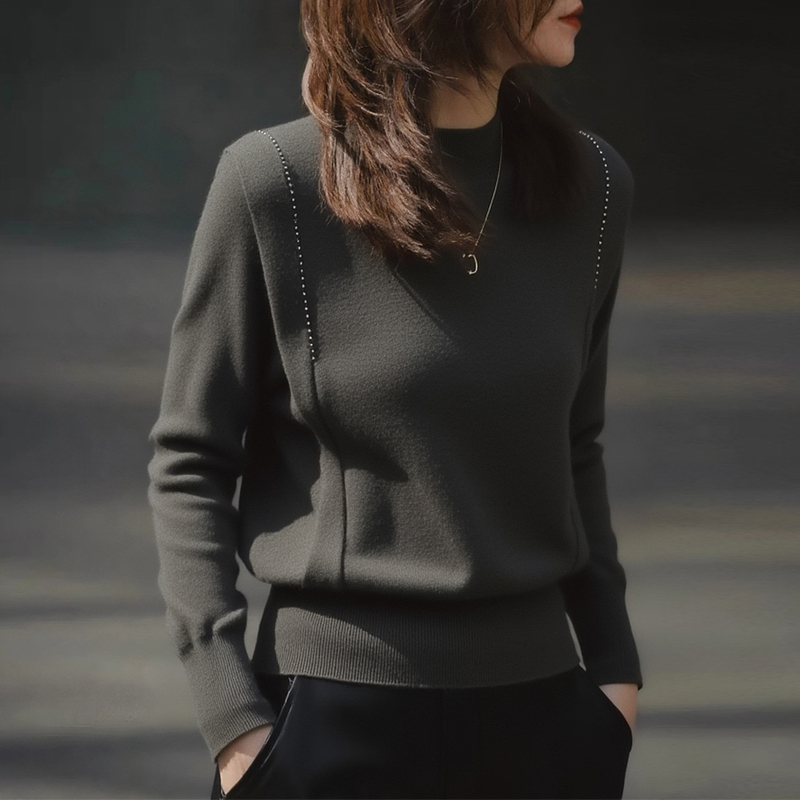 Design with diamond-encrusted dark grey pullover sleeves women's sweater top