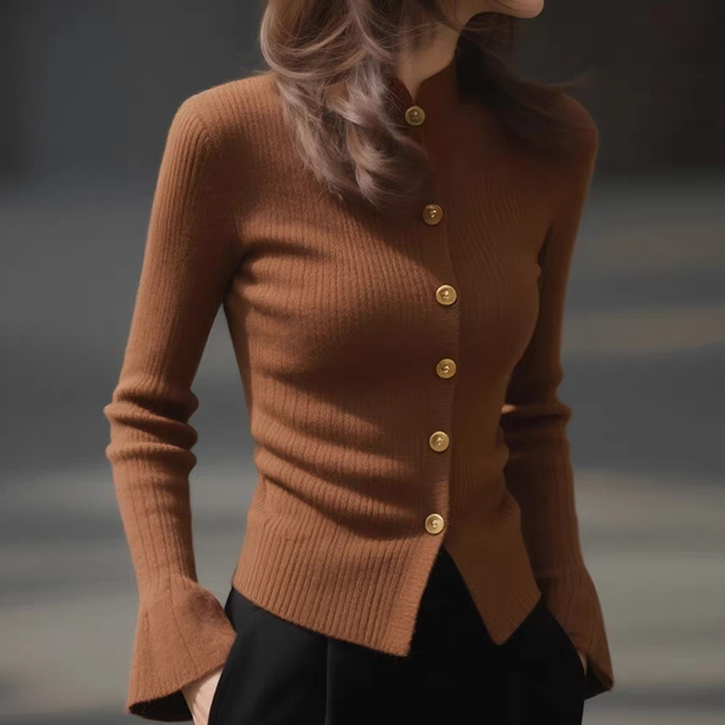Temperament slim and slimming coffee color knitted cardigan autumn and winter women's knitted sweater