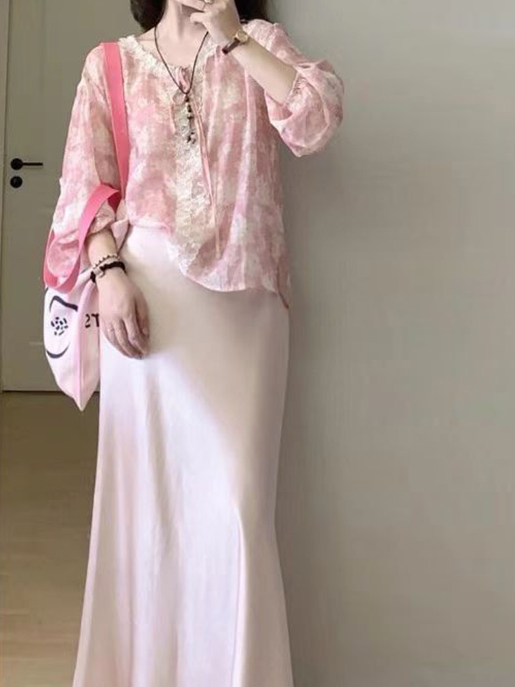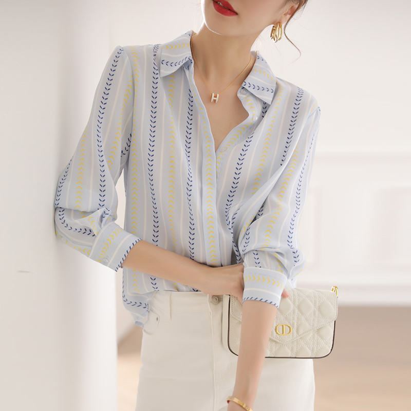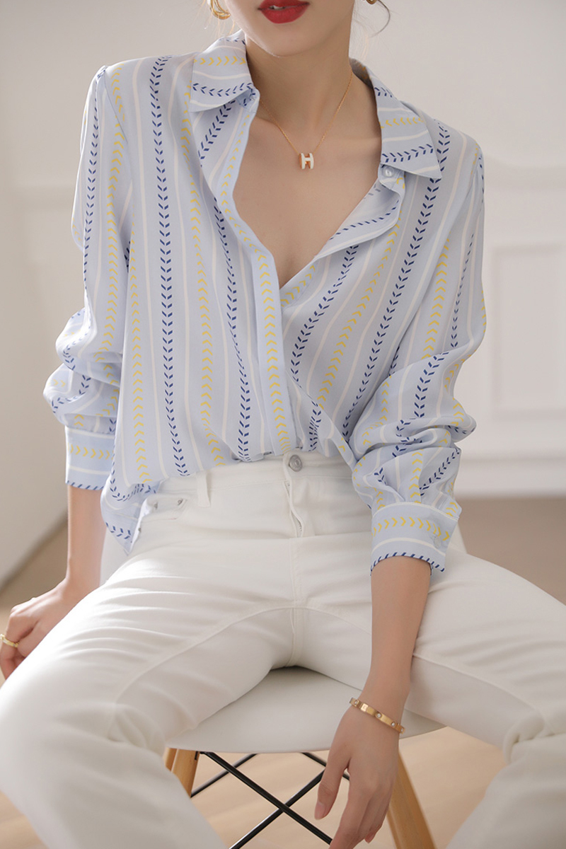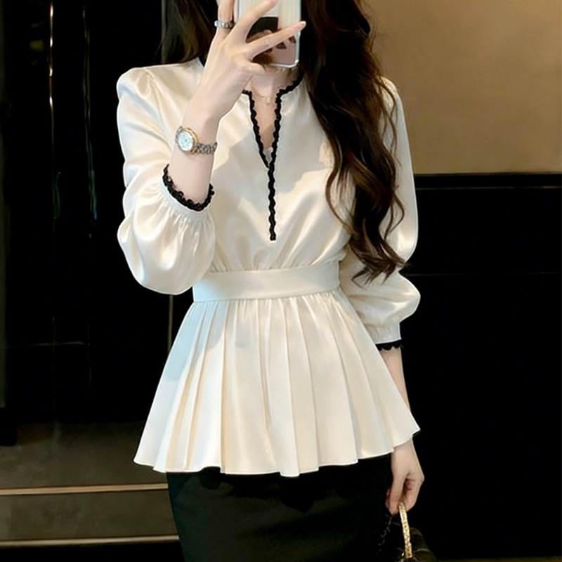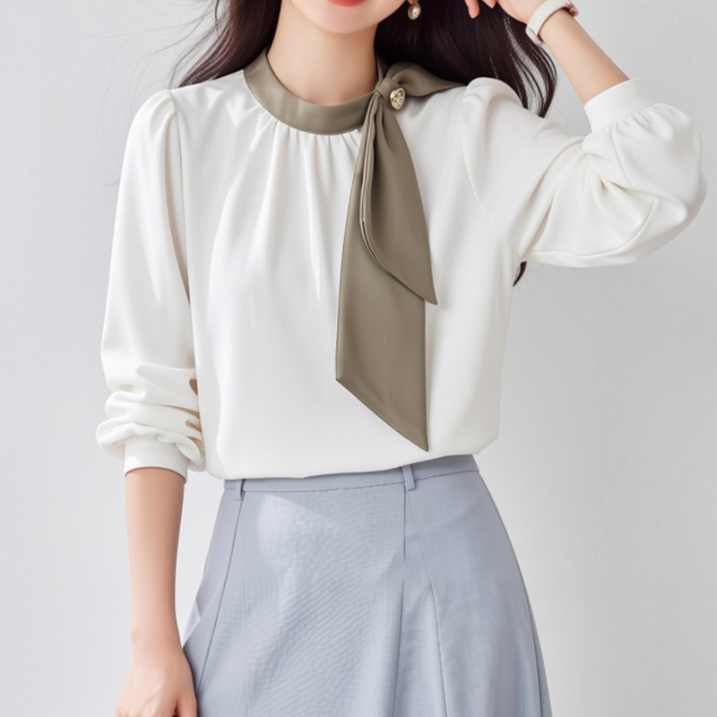 French soft color matching silk neckline pullover sleeves women's shirt