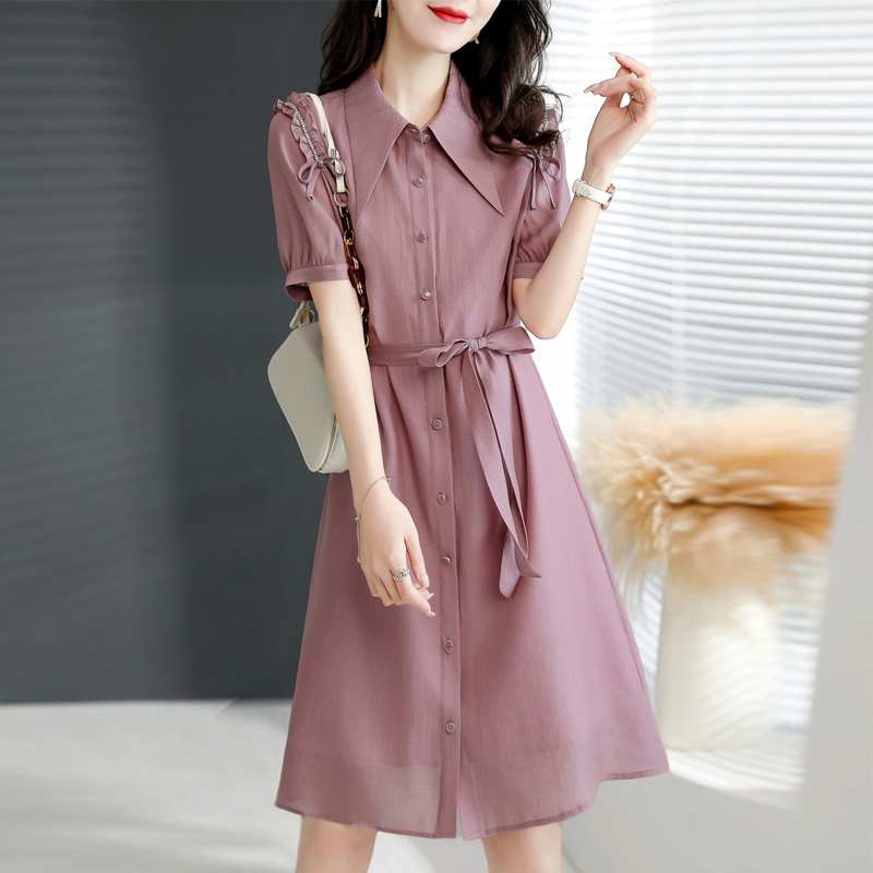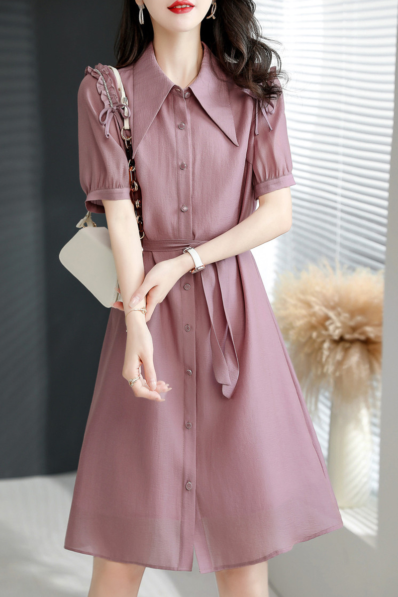 Temperamental shirt skirt purple fungus edge front breasted dress